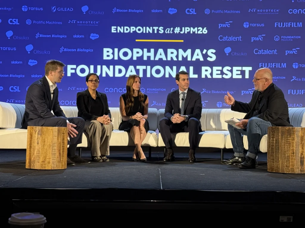 Then 2025 became a key inflection point for everyone. During an Endpoints News JPM 2026 panel, Roel van den Akker, principal and U.S. pharmaceutical and life sciences deals leader at PwC US, described 2025 as “a tale of two halves,” in which biotech was plagued by policy uncertainty early on, but surged in the back half with an uptick in mergers and acquisitions (M&As) and dealmaking, signaling a potential return in 2026. Even within the first few weeks of this year, there were encouraging signals, including Eli Lilly’s $1.2 billion acquisition of Ventyx Biosciences, the launch of Aktis Oncology’s initial public offering (IPO), and Mirador Therapeutics’ $250 million Series B round on the eve of JPM 2026, to name a few.